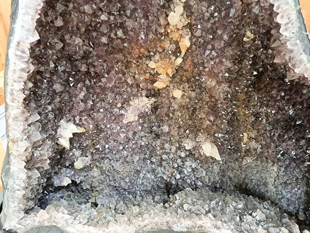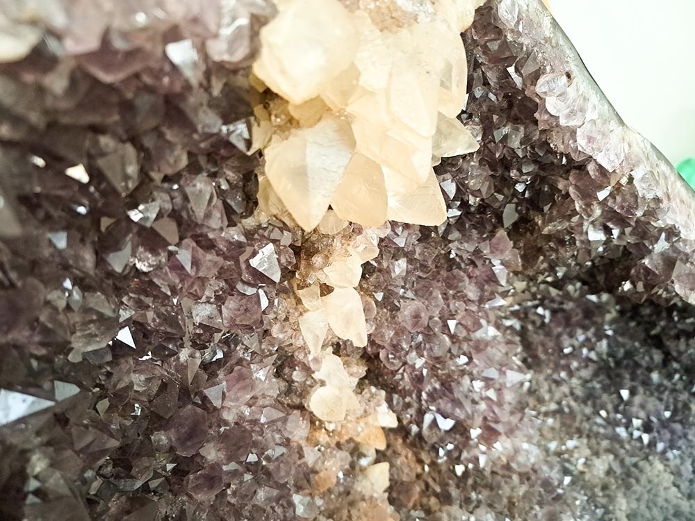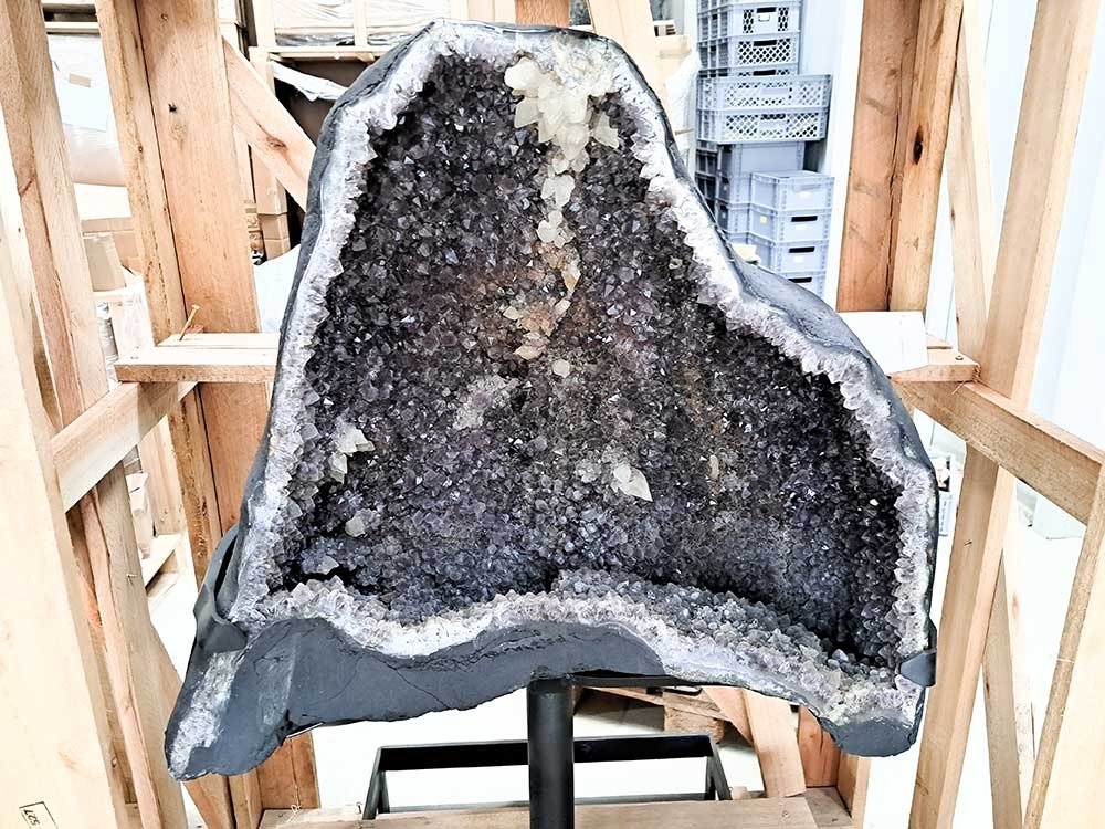 Die leuchtenden Amethystkristalle in verschiedenen Violetttönen sowie die außergewöhnliche Größe und Form