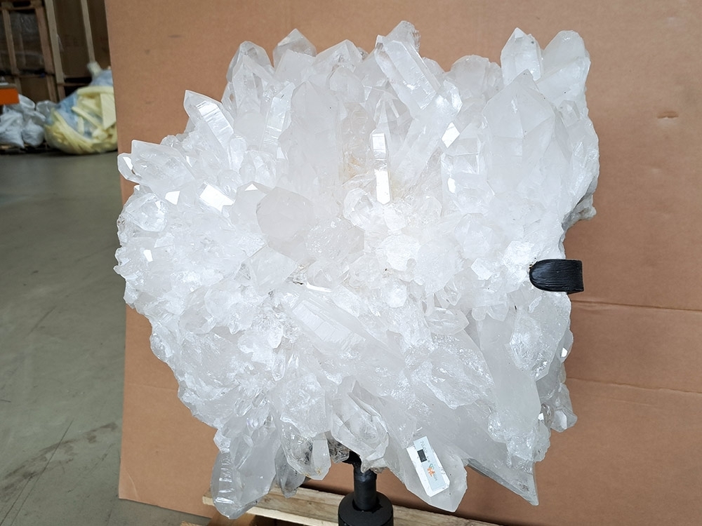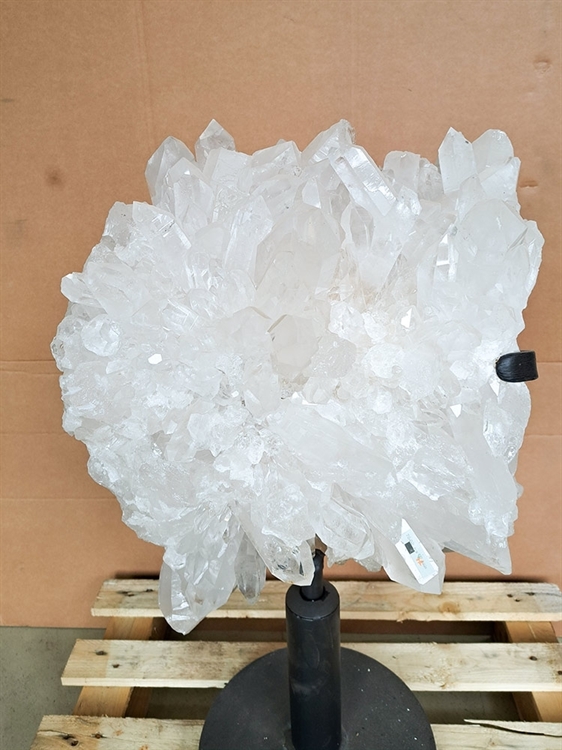 Sie erhalten genau die abgebildete Bergkristallstufe mit Drehsockel!