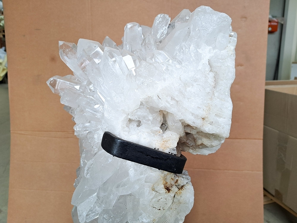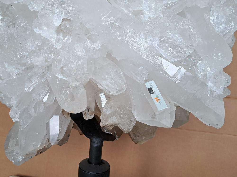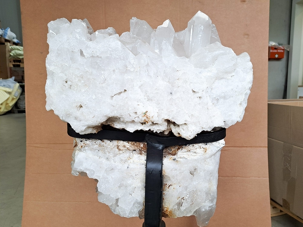 Der sehr dekorative Bergkristall besticht durch seine schönen Kristalle und fällt durch seine Form