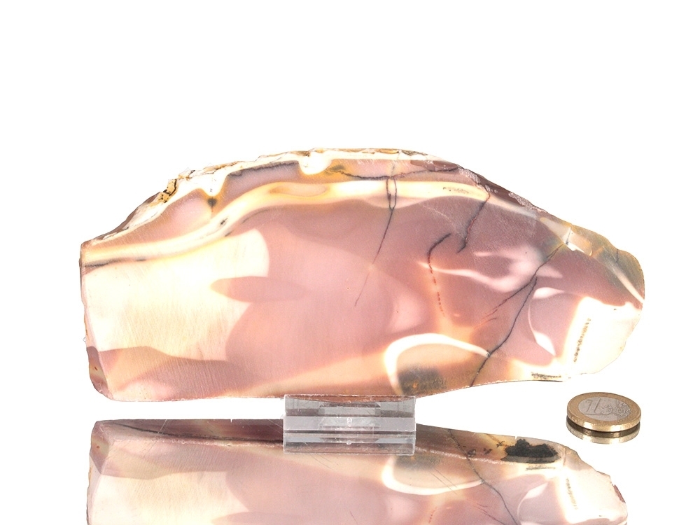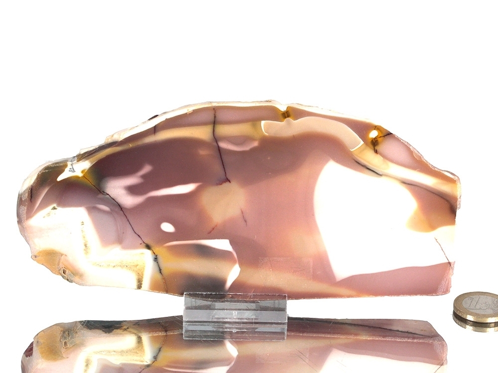 Dieser polierte Anschliff ist ca. 17,5 x 8 x 1,2 cm groß und wiegt ca. 0,3 kg.