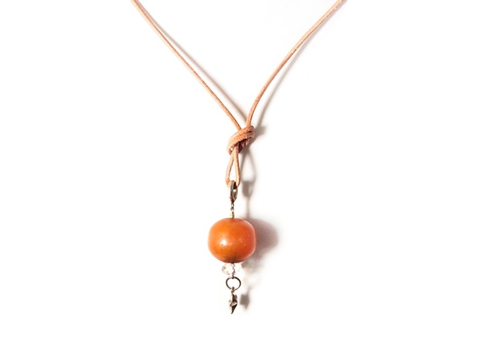 Der Anhänger wurde mit einen Bernstein und einem kleinen Bergkristall gefertigt -
