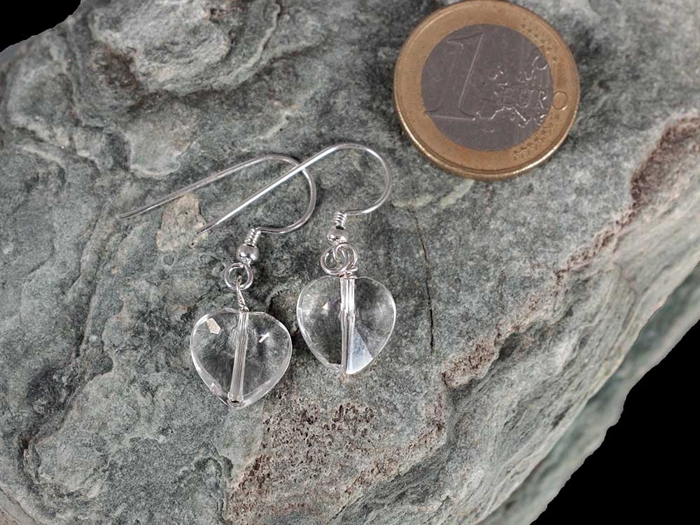 Grösse: 3 cm mit Haken, Ohrhaken in Silber, Bergkristall: 1,5 cm