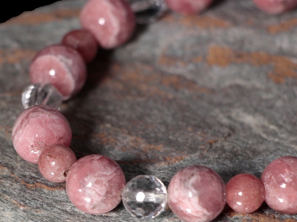 Durch die sanften Farbnuancen des Rhodochrosits und das klare Strahlen des Bergkristalls entsteht ein harmonisches Gesamtbild - ideal für den Alltag und besondere Anlässe.