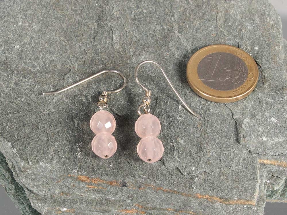 Diese wunderschönen Rosenquarzohrringe wurden hier mit jeweils zwei facettierten Kugeln in liebevoller Handarbeit gefertigt.