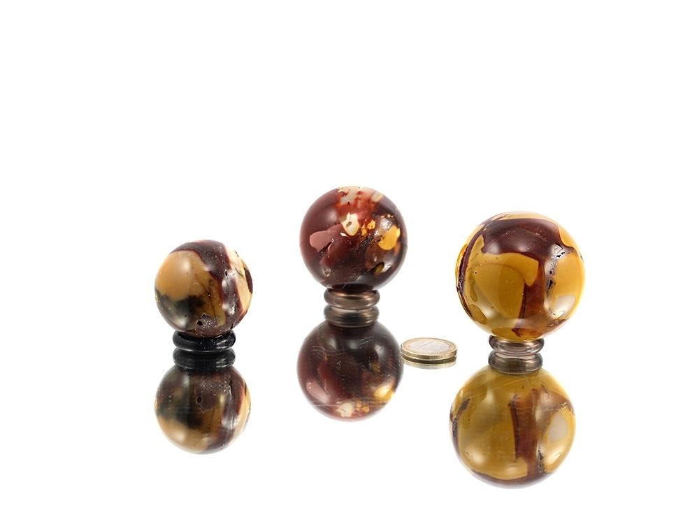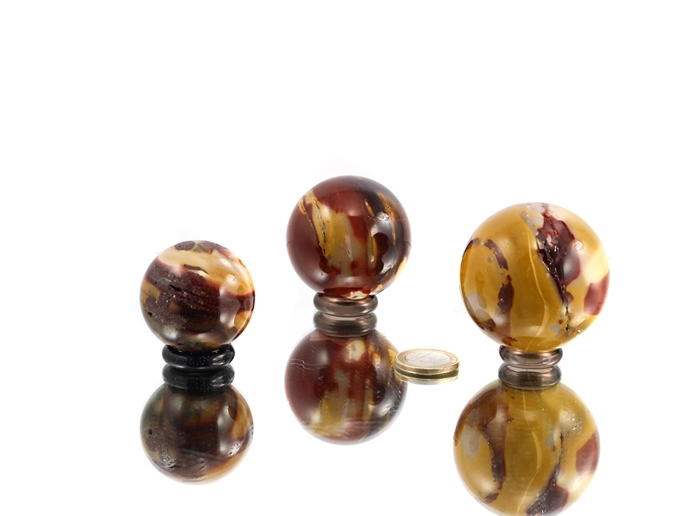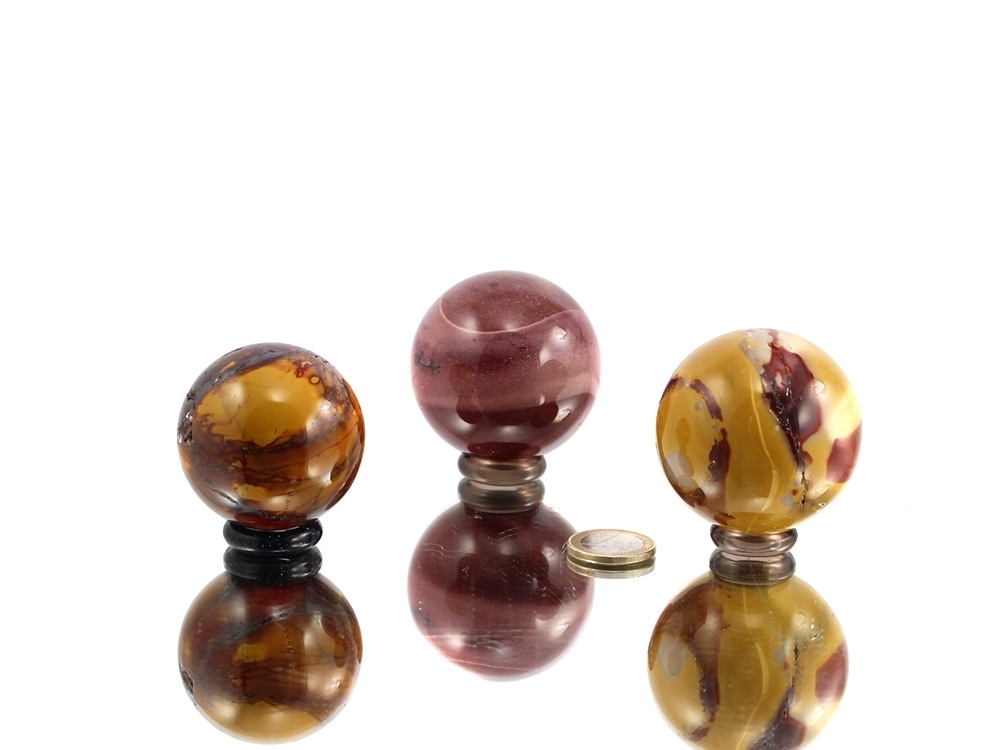 Diese Stücke wurden aus Mookait geschliffen - einer australischen Jaspis Varietät mit besonders bunten Erdfarben.