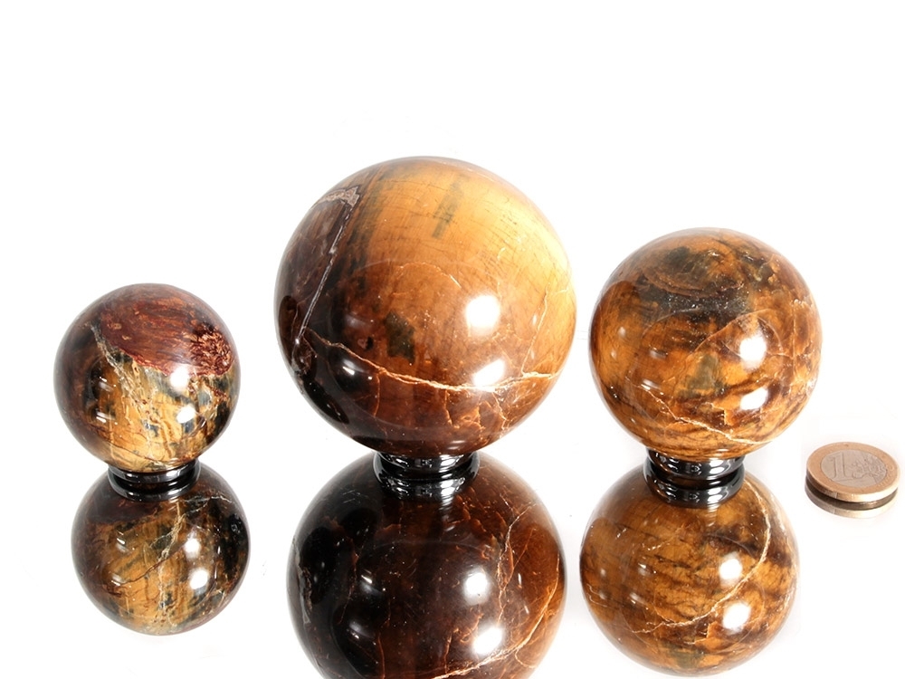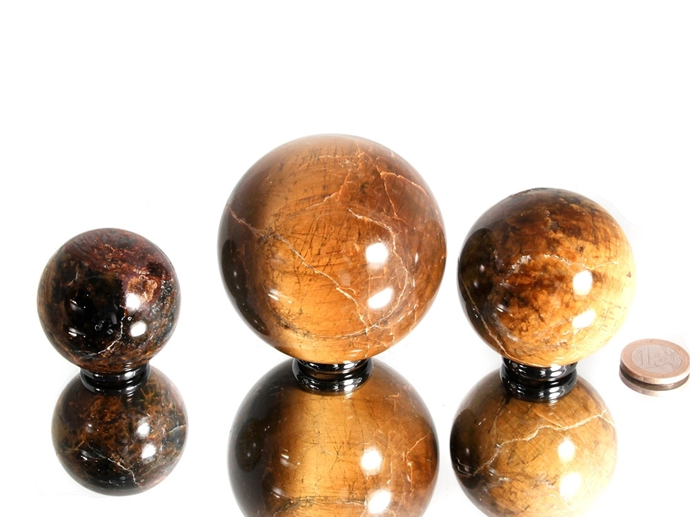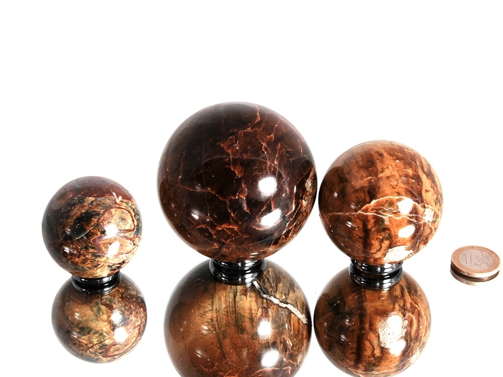 Die Edelsteinkugeln sind zwischen ca. 4 - 8,5 cm im Durchmesser.