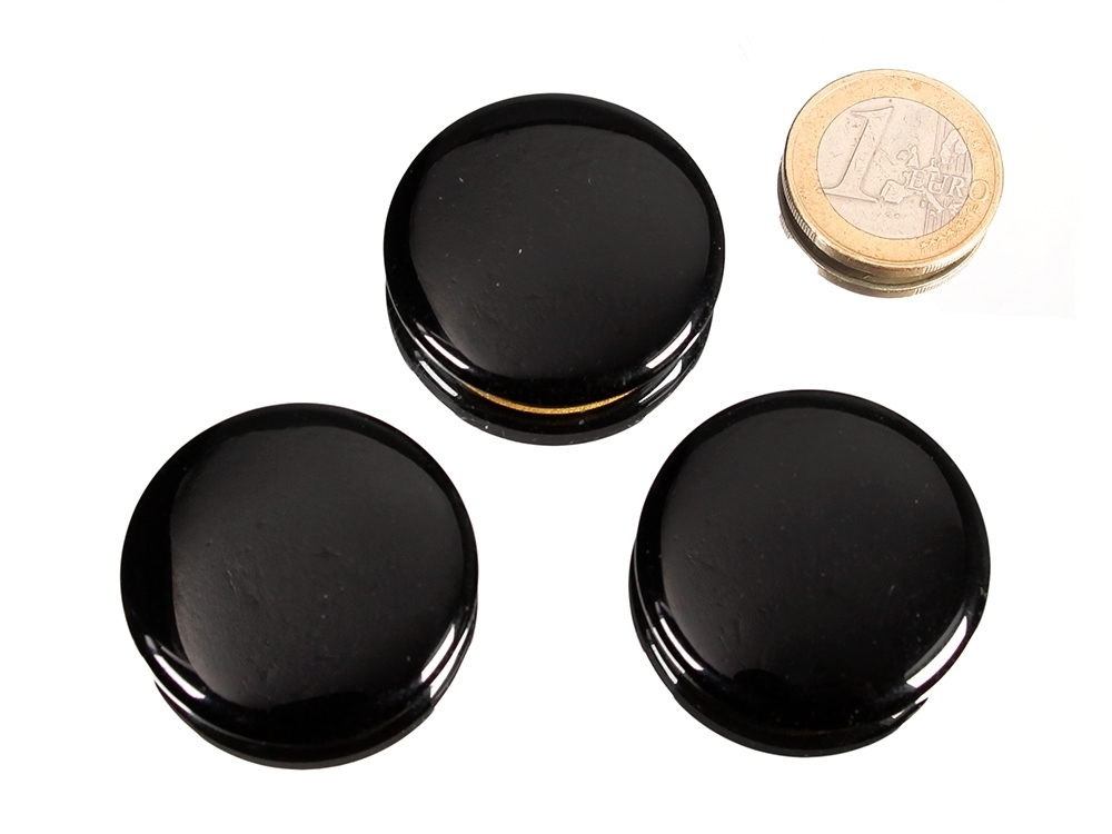 Die Obsidian Scheibe hat einen Durchmesser von ca. 3,5 cm (+/-) und ist etwa 0,7 cm dick (+/-)
