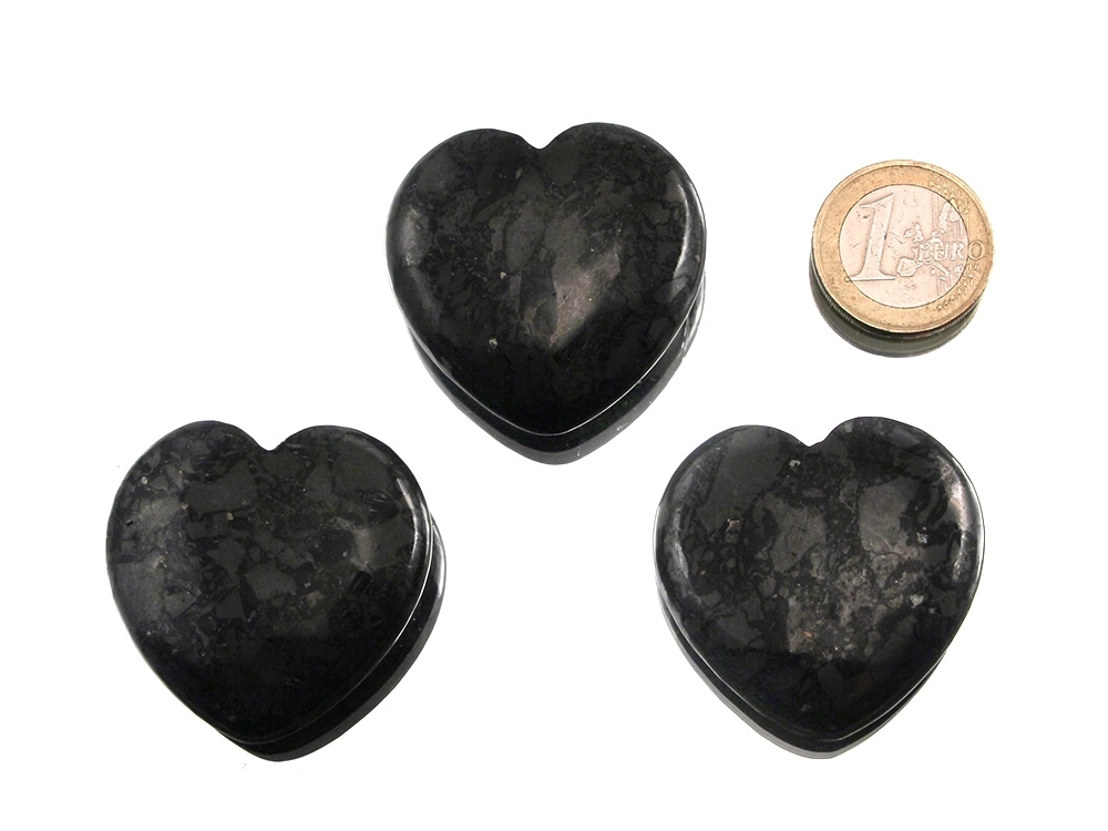 Die Schungit Herzen sind ca. 4 x 4 x 1,2 cm groß.