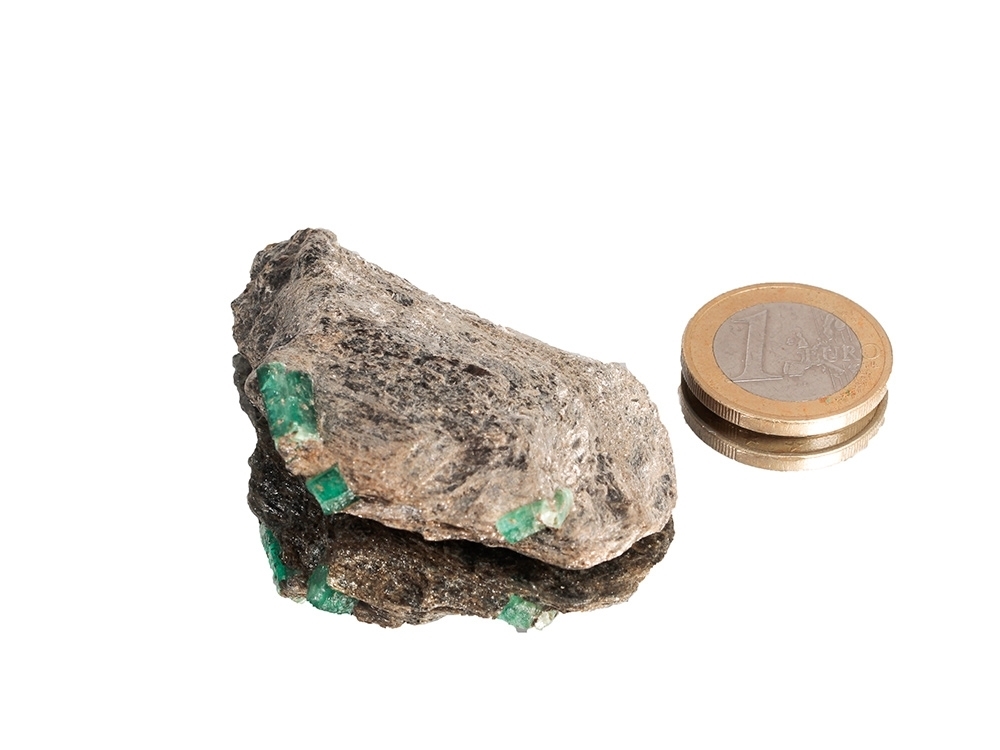 Dieser Smaragd ist in einer Matrix aus Biotit eingebettet, die im berühmten Habachtal in Österreich gefunden wurde.