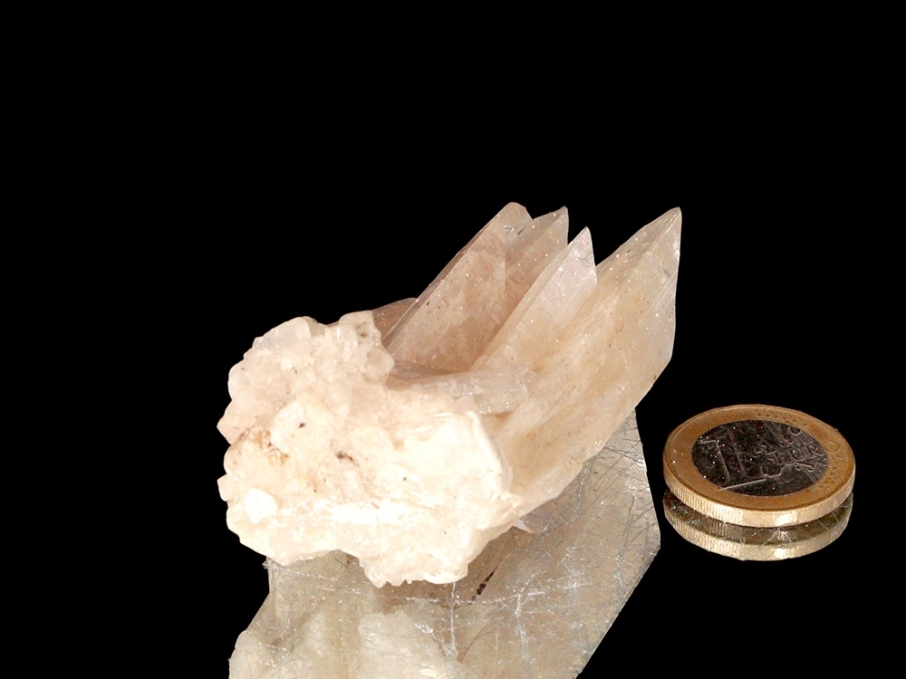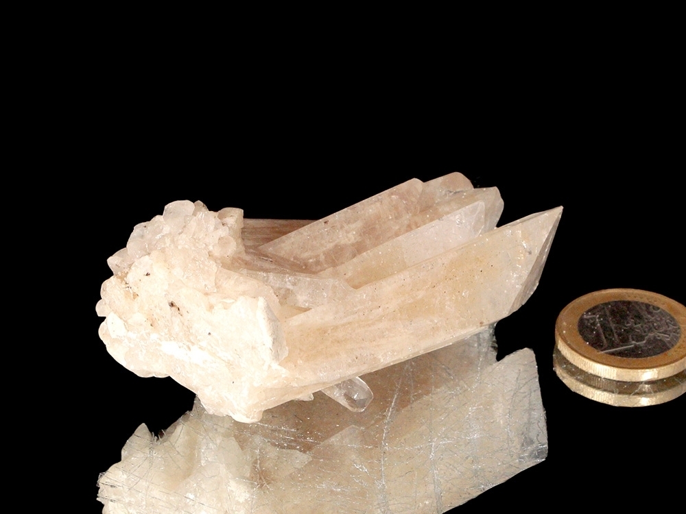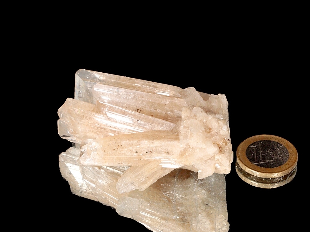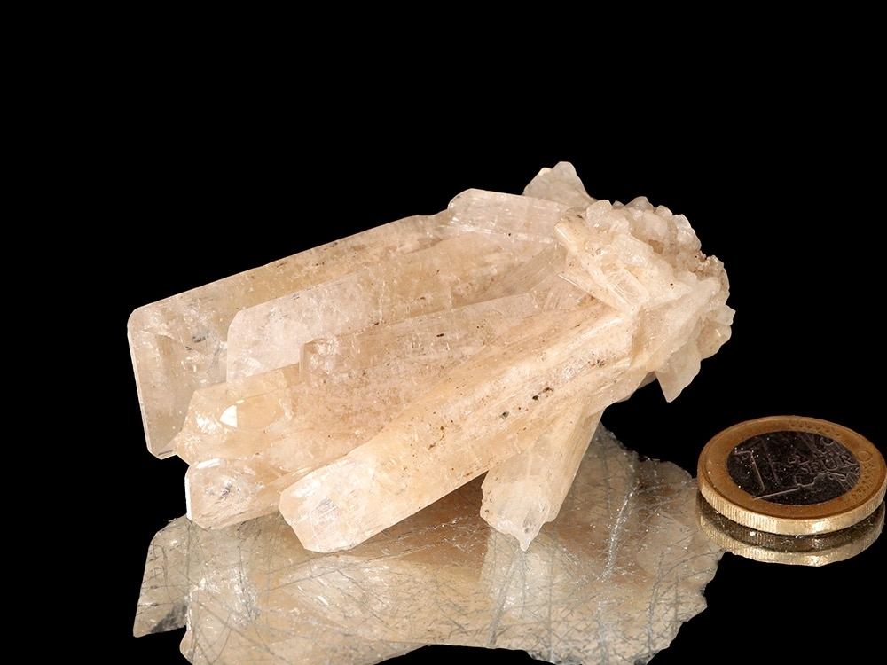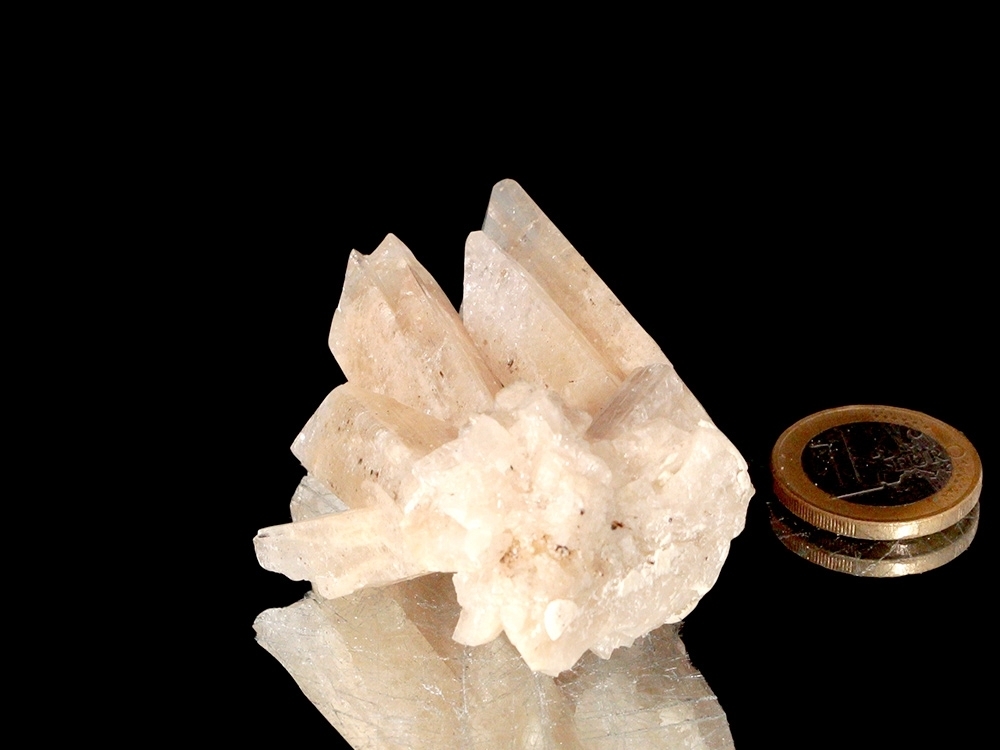 Diese Danburit Stufe hat eine Größe von ca. 6,7 x 4,2 x 2,3 cm und wiegt etwa 94 g.