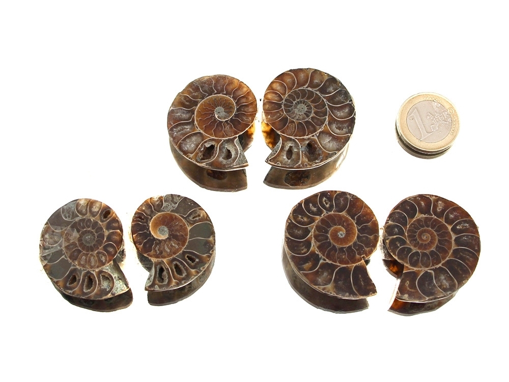 Dadurch erhält man ein sehr nettes Paar Ammoniten jeweils mit individueller Struktur.