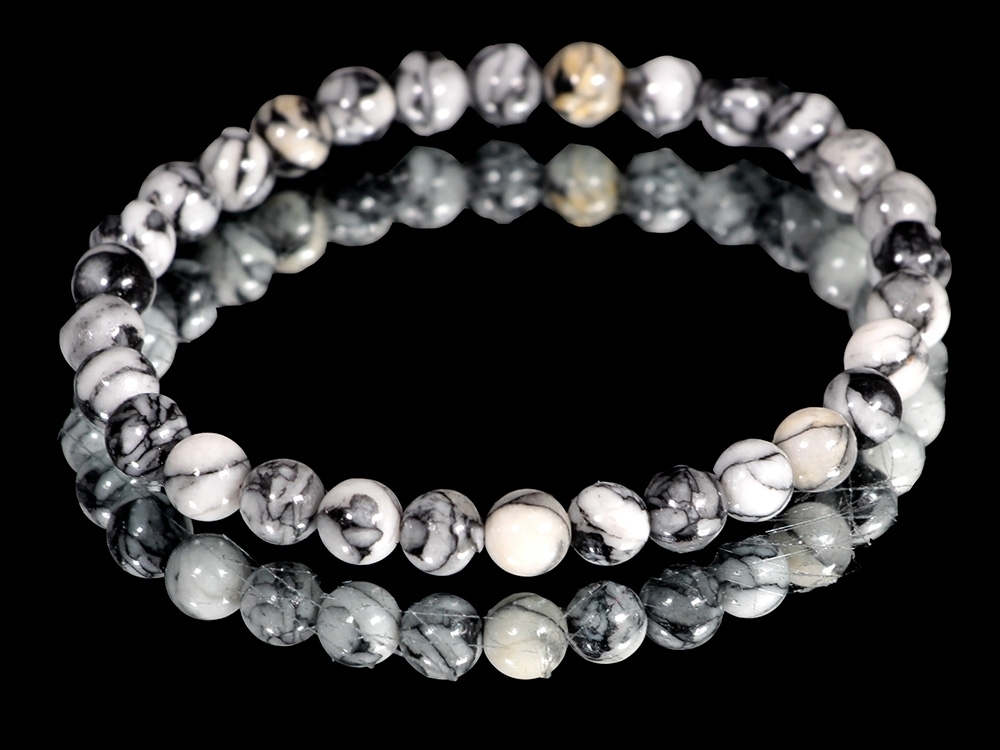 die auf einem elastischen Gummiband aufgefädelt wurden.