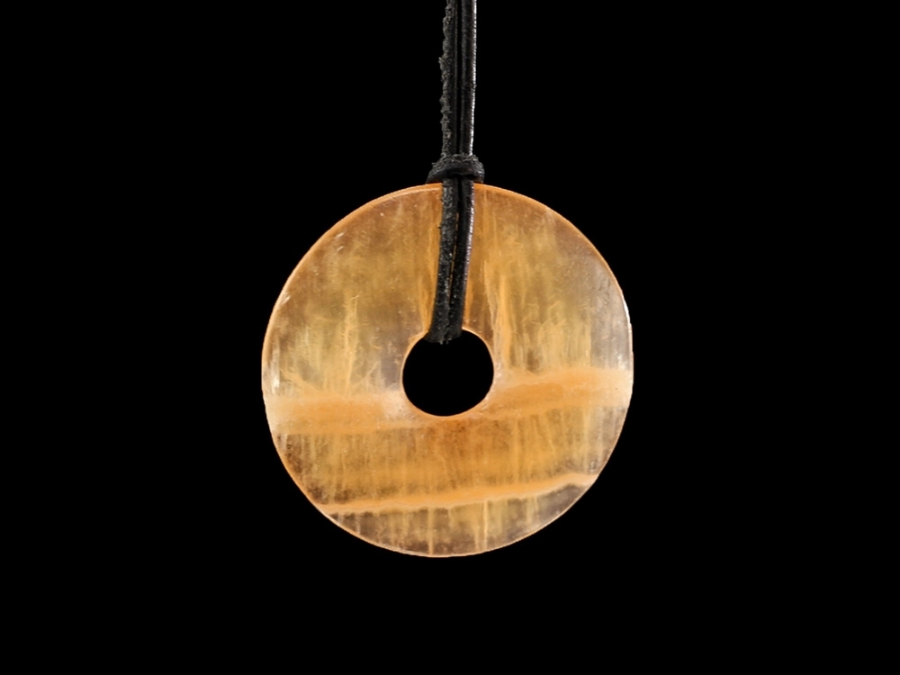 Dieses Schmuckstück wird gern mit einem Lederband oder einem Donuthalter getragen.