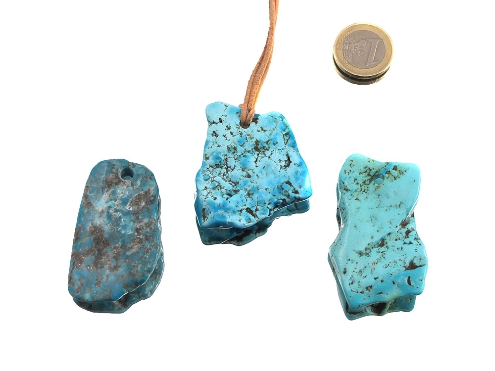 Alle Anhänger wurden aus ausgewählten, flachen Trükisnuggets gefertigt und mit einer Bohrung versehen, damit