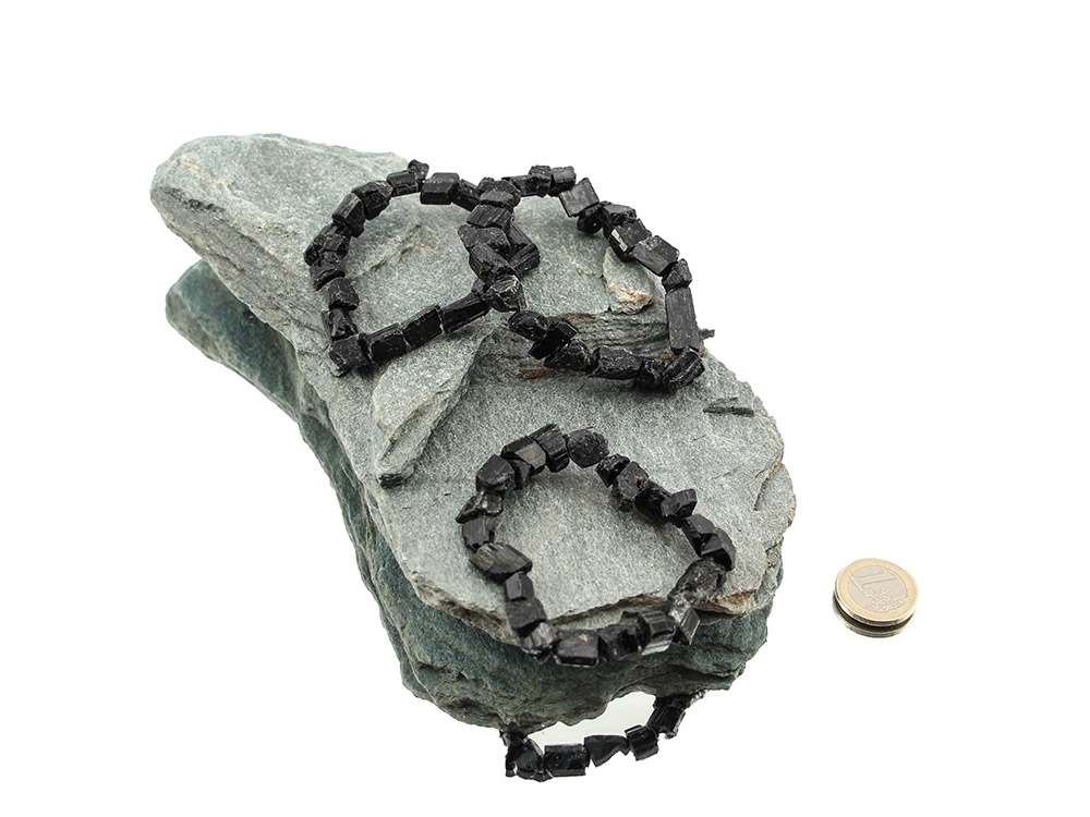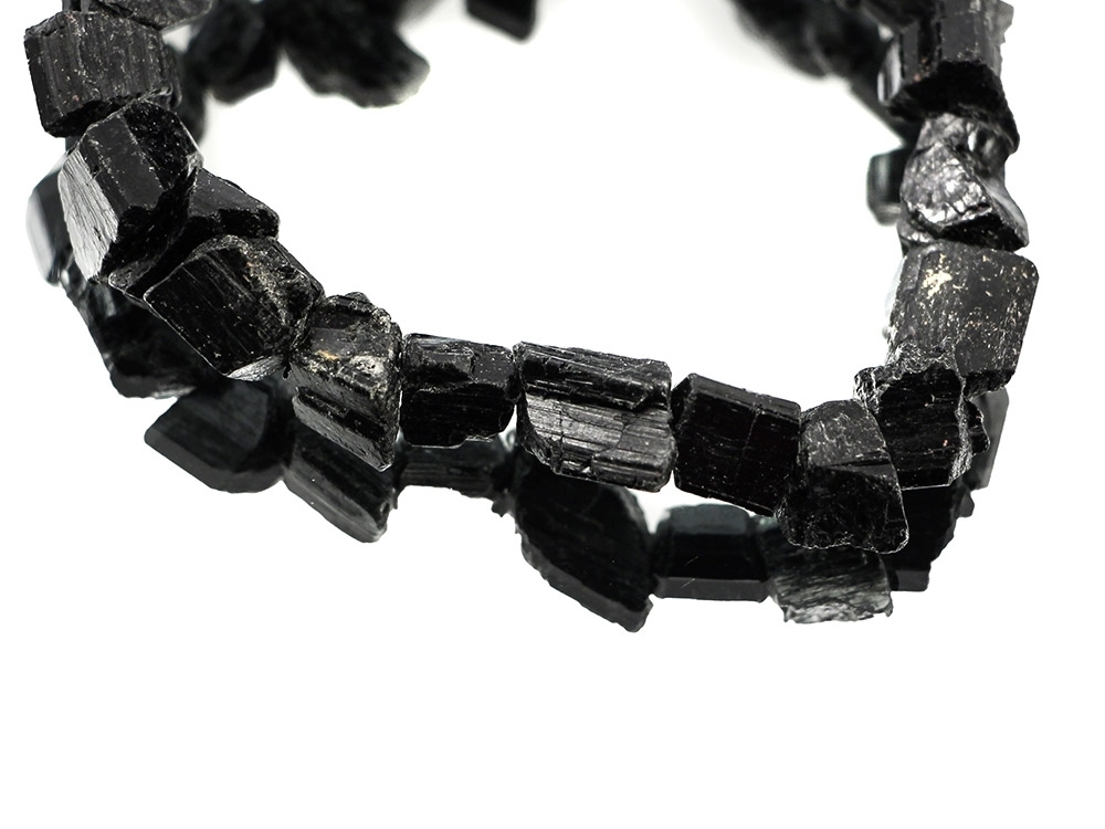 Für dieses Armband wurden natürlich gewachsene, nicht geschliffene Turmaline gebohrt und aufgefädelt.